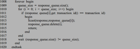 (2) response机制的原理是driver将rsp推送到sequencer,而sequencer内部维持一个队列,当有新的response进入时,就推入此队列. 队列的大小有效,如果driver中处理完每个transaction后,都发送一个response,而sequence中又没能及时get_response, sequencer中的response队列就存在溢出的风险.