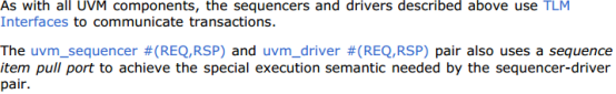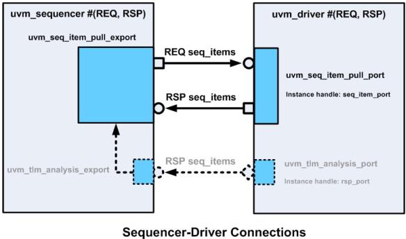 (2) driver与sequencer之间的TLM通信采用get模式,即由driver发起请求,从sequencer一端获得item, 再由sequencer将其传递给driver(driver获取的REQ sequence_item来源于sequencer的request FIFO);