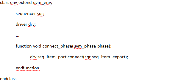 (3) 由于driver是请求发起端,sequencer是请求响应端,所以二者例化的端口分别如下: