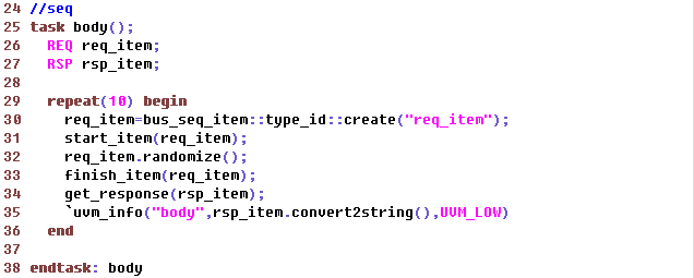 (2)在调用start_item时,sequencer会为request sequence_item设置id信息; response sequence_item需要copy request sequence_item的id信息,以便于它能够route到正确的sequence上,set_id_info提供了这样的功能;