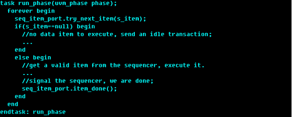 (2)如果try_next_item返回一有效的REQ句柄,后面需要调用item_done完成握手;
