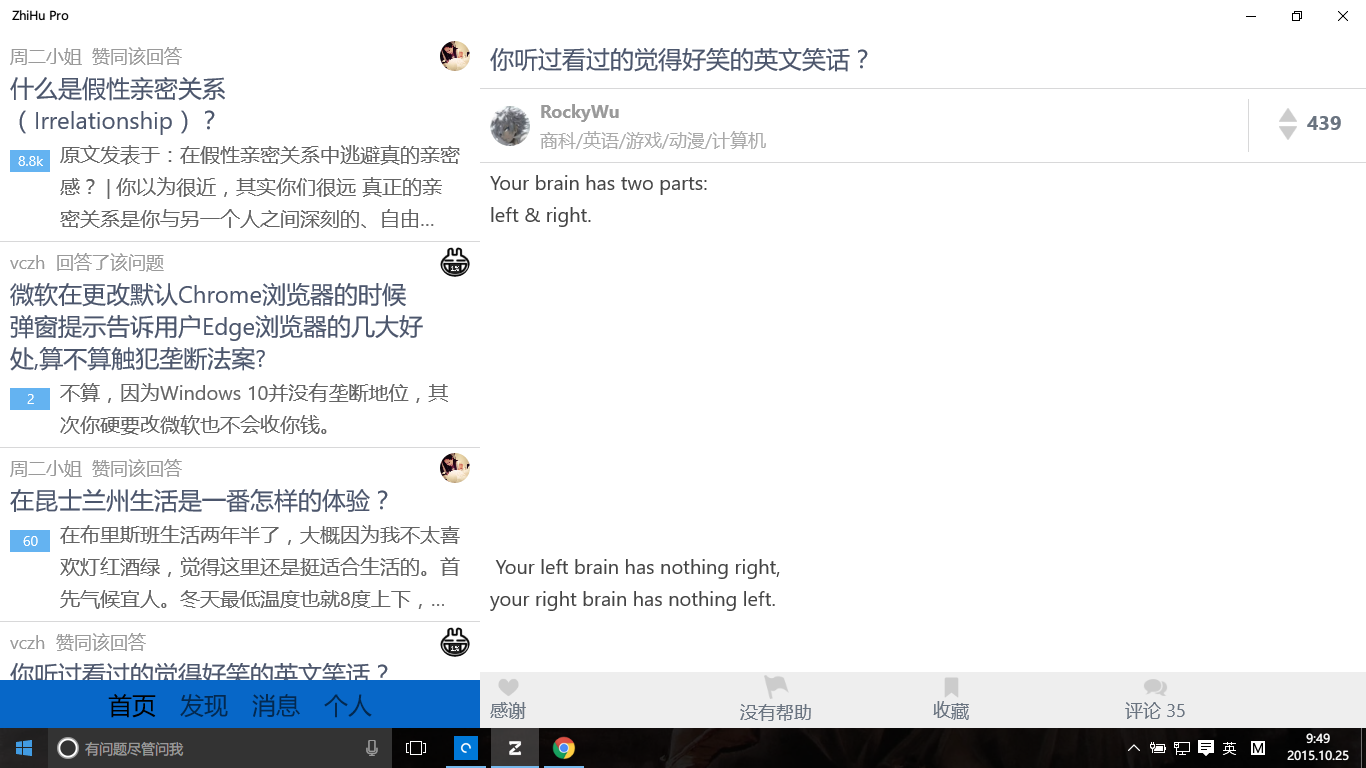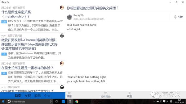 Zhihu Pro 知乎在Windows10的第三方客户端,功能齐全(但只支持邮箱登陆),操作也方便。