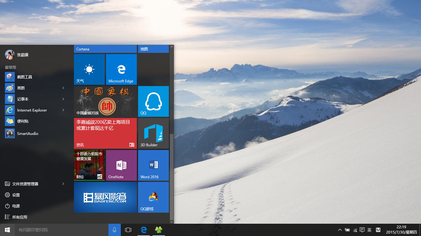 微软在某些方面的审美还是很不错的,比如说强势回归的开始菜单,然而我敢打包票,大多数人的开始菜单是这个样子的。