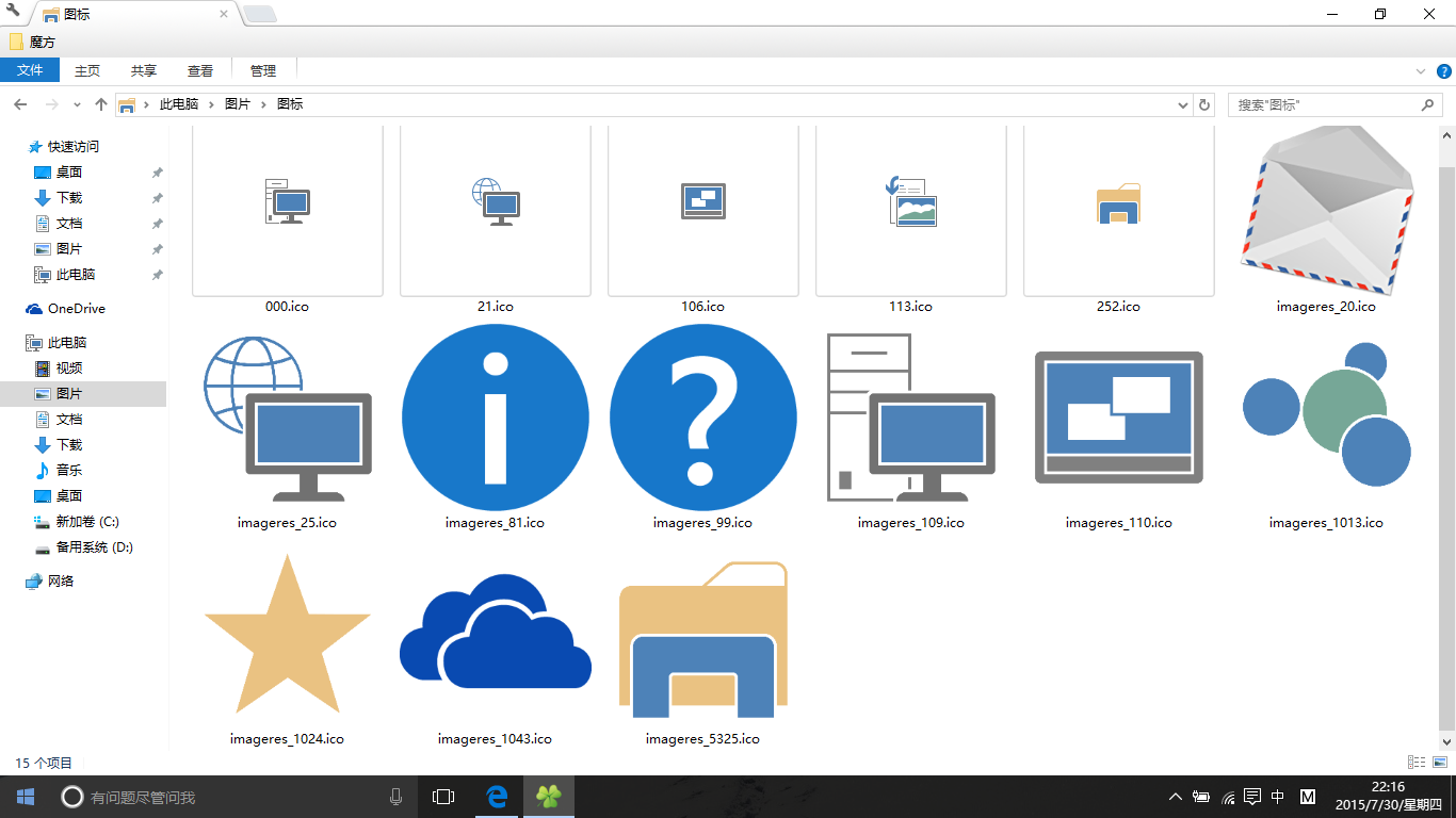超级扁平又美观有没有!很想要有没有!这是微软在9860版本中使用的图标,不知道哪个天杀的把这么可爱的图标统统干掉了,把这个替换掉现有的图标,审美三年之内不会疲劳啊!