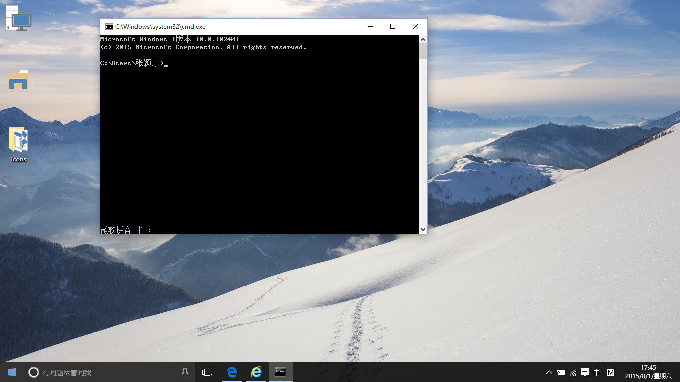 请Windows+R,然后输入cmd,一块黑乎乎的对话框出现在面前