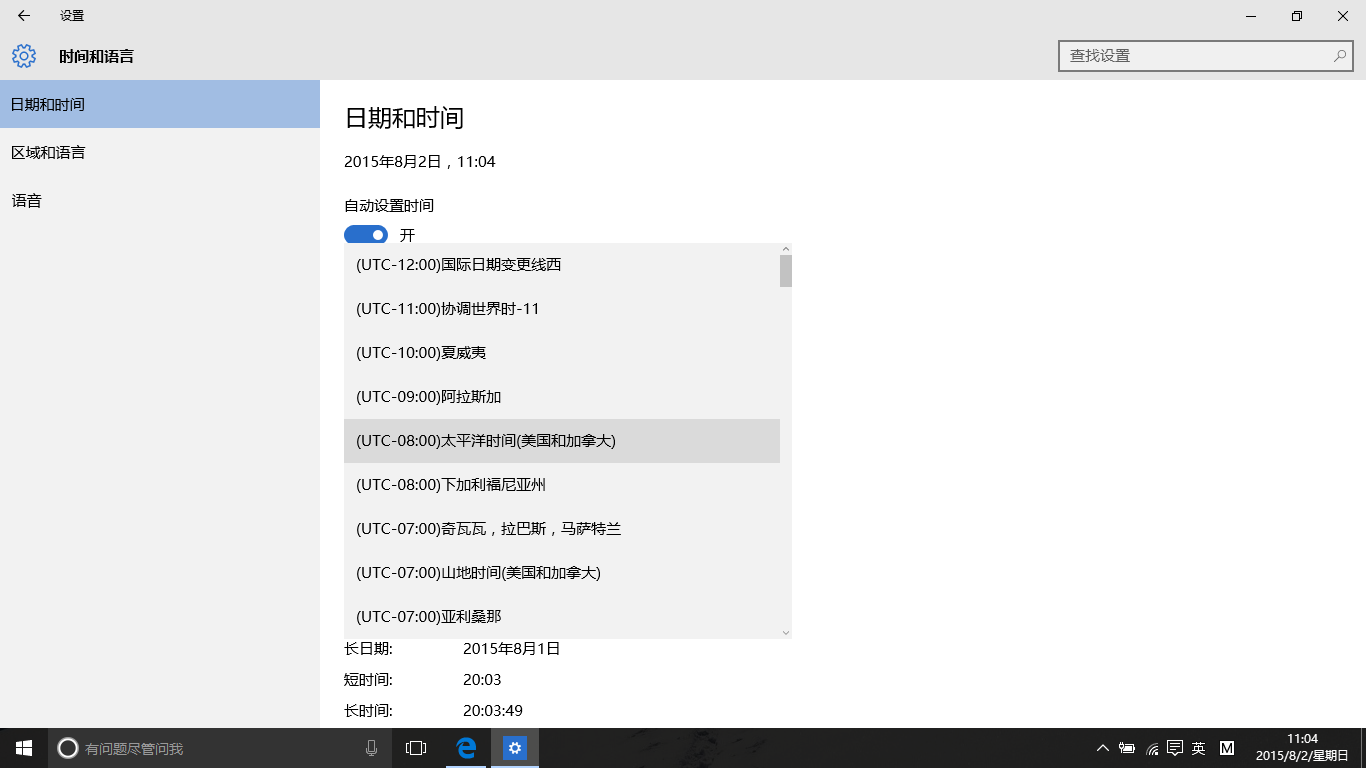 在设置中打开时间和语言,将日期和时间调至美国
