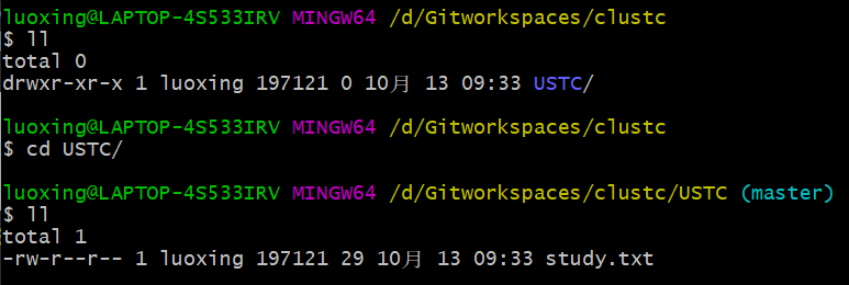 可以看到,通过clone命令可以完整的将远程库下载到本地,并且创建远程库别名,同时初始化本地库。