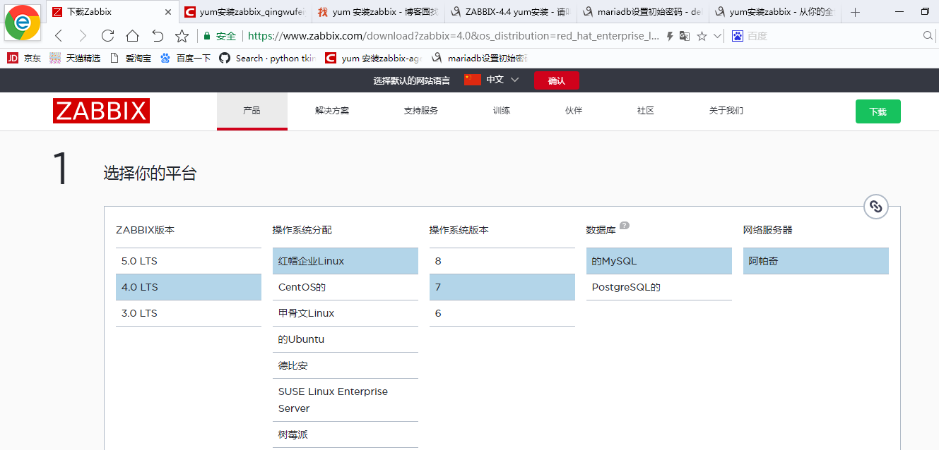 1、进入www.zabbix.com,下载相应的zabbix版本