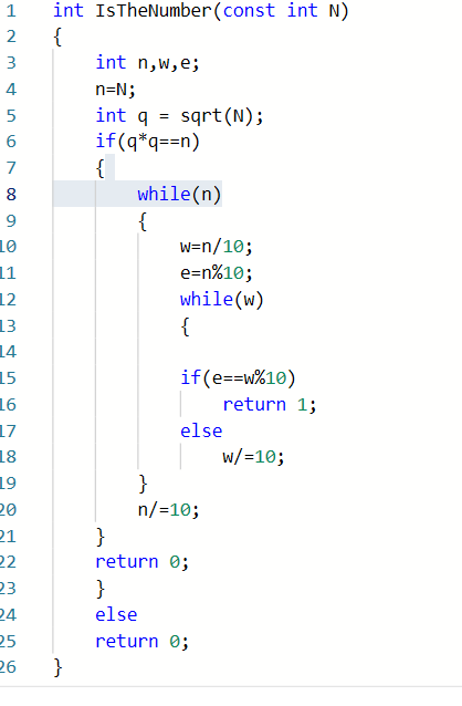 本题要求实现一个函数,判断任一给定整数N是否满足条件:它是完全平方数,又至少有两位数字相同,如144、676等。