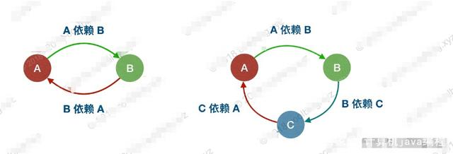 简单的说就是A依赖B,B依赖C,C依赖A这样就构成了循环依赖。