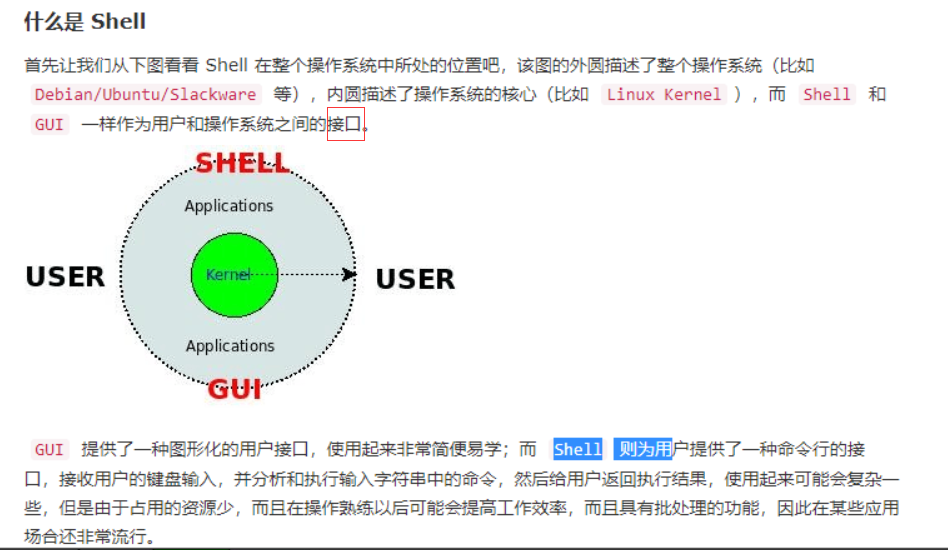 简单来说“Shell 编程就是对一堆 Linux 命令的逻辑化处理”。W3Cschool 上的一篇文章是这样介绍 Shell 的,如下图所示。