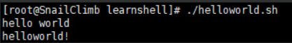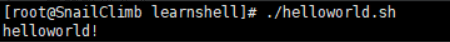 (4) 运行脚本:./helloworld.sh 。(注意,一定要写成 ./helloworld.sh ,而不是 helloworld.sh ,运行其它二进制的程序也一样,直接写 helloworld.sh ,linux 系统会去 PATH 里寻找有没有叫 helloworld.sh 的,而只有 /bin, /sbin, /usr/bin,/usr/sbin 等在 PATH 里,你的当前目录通常不在 PATH 里,所以写成 helloworld.sh 是会找不到命令的,要用./helloworld.sh 告诉系统说,就在当前目录找。)