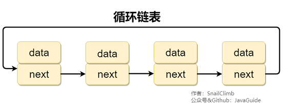 循环链表 其实是一种特殊的单链表,和单链表不同的是循环链表的尾结点不是指向 null,而是指向链表的头结点。