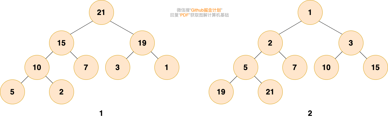 - 删除堆顶元素后需要执行自顶向下(沉底)堆化还是自底向上(上浮)堆化?