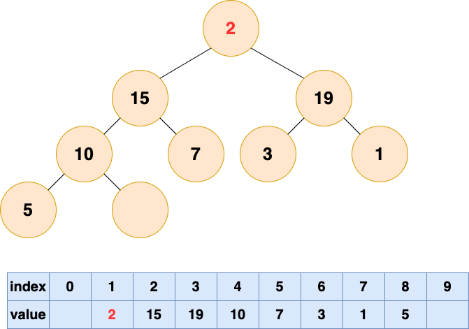 取出第二个元素并堆化: