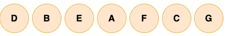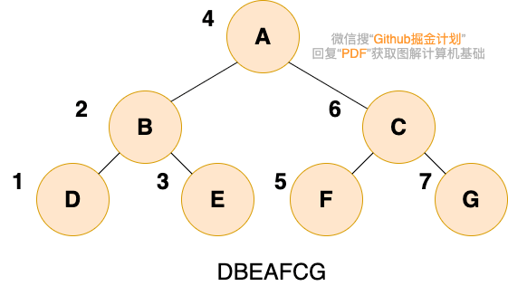 二叉树的中序遍历,就是先递归中序遍历左子树,再输出根结点的值,再递归中序遍历右子树,大家可以想象成一巴掌把树压扁,父结点被拍到了左子节点和右子节点的中间,如下图所示: