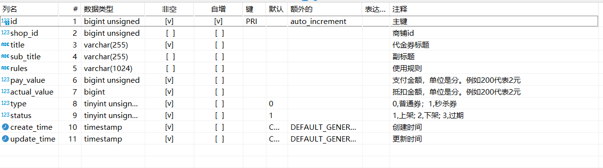 我们针对签到功能完全可以通过mysql来完成,比如说以下这张表