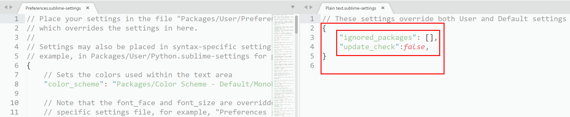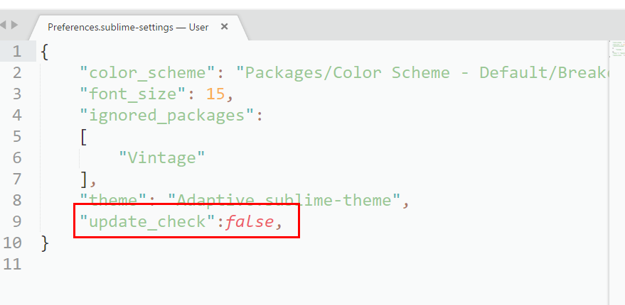 - 然后Ctrl+S保存,重启Sublime Text就可以了,烦人的更新就不会出现了!!!