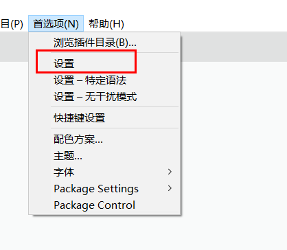 - 打开Sublime,在最上方菜单栏点击Preferences(中文“首选项”),然后点击Settings(中文“设置”)