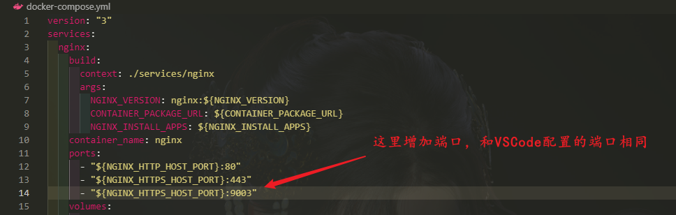 三、E:\dnmp\docker-compose.yml增加端口配置,添加配置后重启docker
