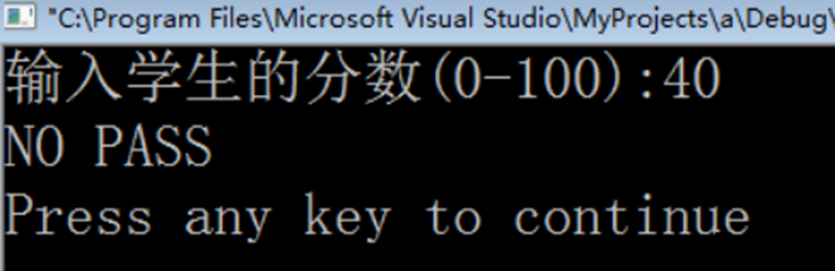 #include<stdio.h> main() { int mark; printf("输入学生的分数(0-100):"); scanf("%d",&mark); switch(mark/10) { case 10: case 9:printf("A\n"); break; case 8:printf("B\n"); break; case 7:printf("C\n"); break; case 6:printf("D\n"); break; default:printf("NO PASS\n");break; } }