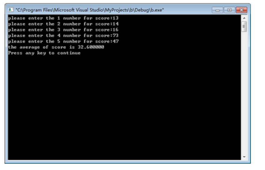#include <stdio.h> main() { int a[5]; int i,sum=0; double avg; for ( i=0;i<5;i++ ) { printf ( "please enter the %d number for score:",i+1 ); scanf ( "%d",&a[i] ); sum+=a[i]; } avg=sum/5.0; printf ( "the average of score is %f\n",avg ); }