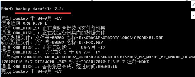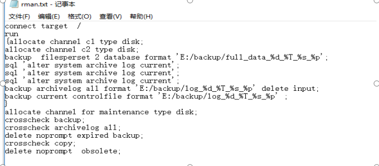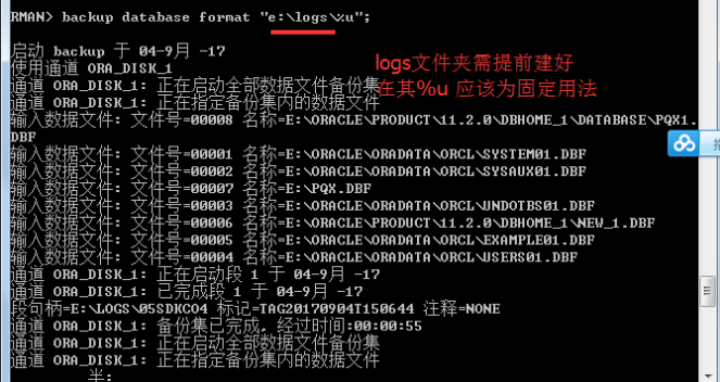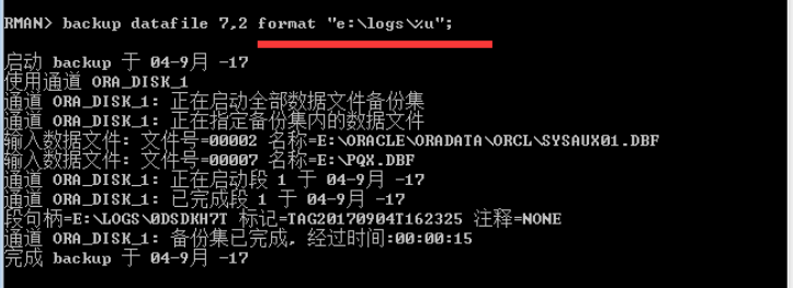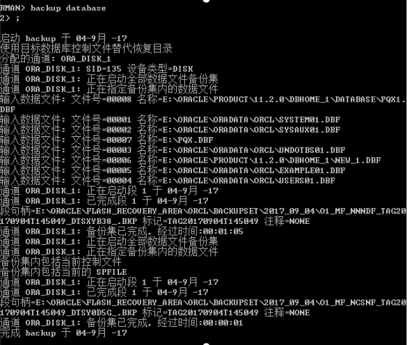 步骤三、以上准备工作做好后,再进入rman中,进行数据库的全备。