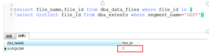 首先可以通过数据字典dba_data_files查询出表空间对应的数据文件及其序号,例如: