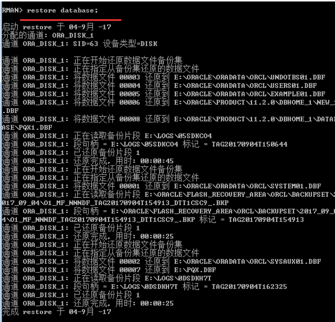 如果是全库恢复的话,需要关闭数据数据,如果是表空间还原,需要先将表空间离线(offline)状态