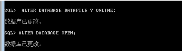 执行完后,再使该文件处于online状态 ,再打开数据库。