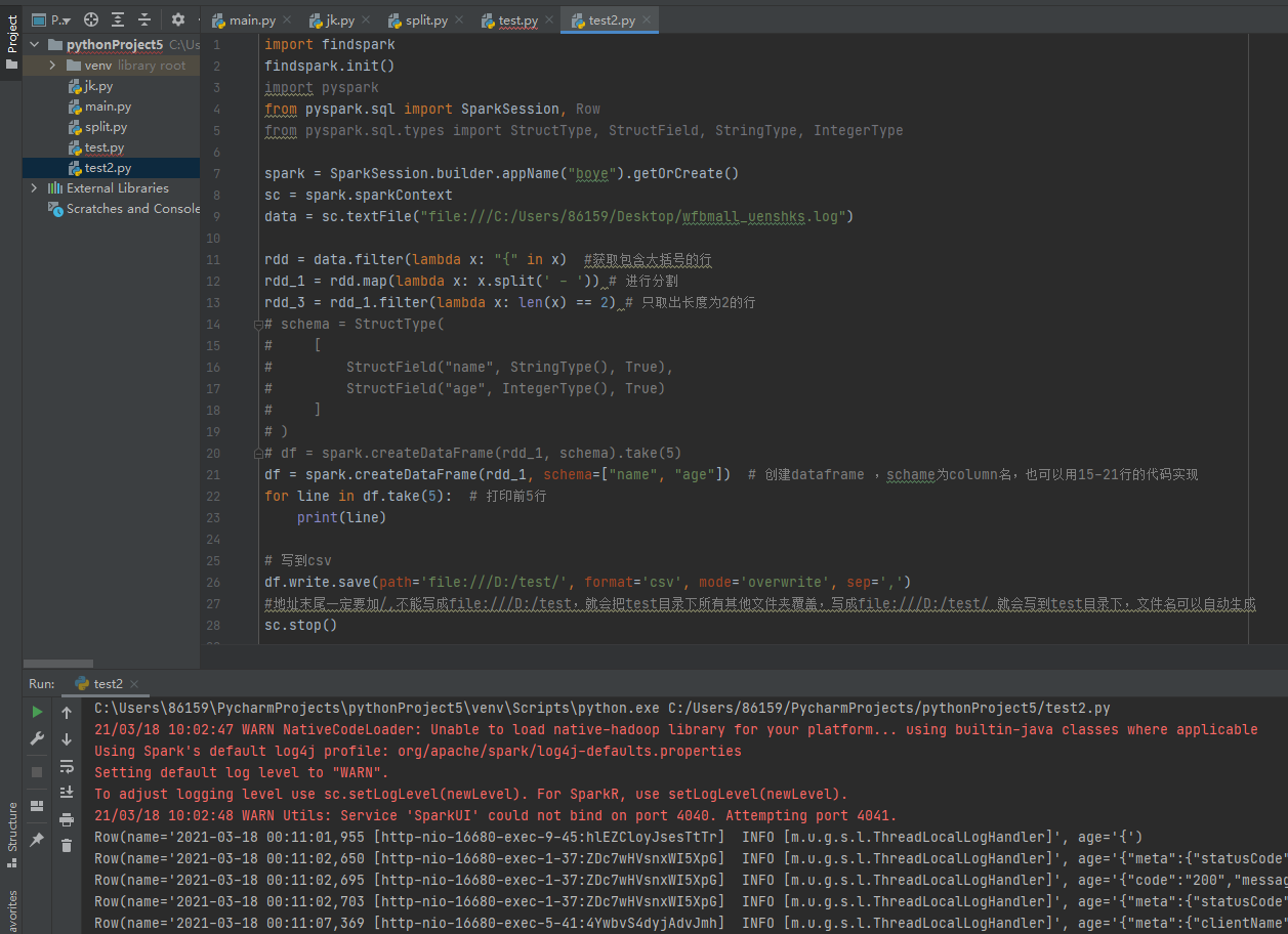 案例二,将rdd转化为DataFrame,并保存为csv文件