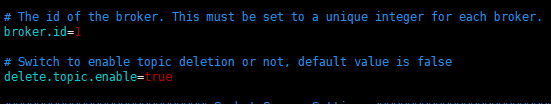 1)修改 broker.id=1 尽量与上面配置的zookeeper myid 保持一致