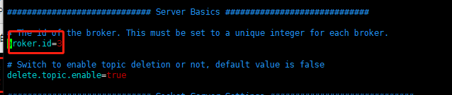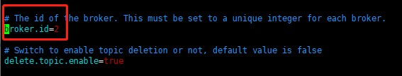 4.修改分发后的配置文件中的broker.id 值,此处本人分别修改为2和3
