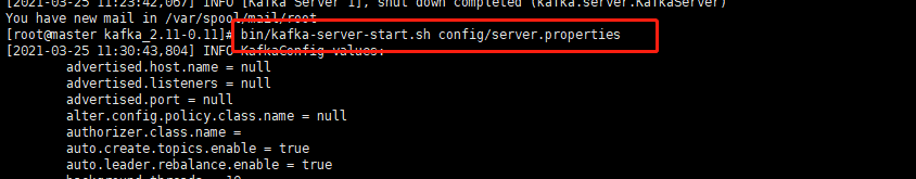 [root@master kafka_2.11-0.11]# bin/kafka-server-start.sh config/server.properties