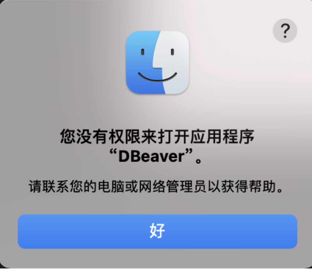 问题:打开DBeaver时候突然提示“您没有权限来打开应用程序DBeaver”