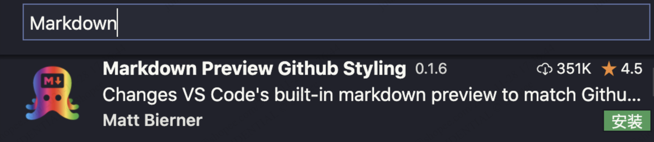 第一个插件,是一个组合包,会把最常用的Markdown优化都装好;第二个插件,则是Github使用的Markdown渲染样式.