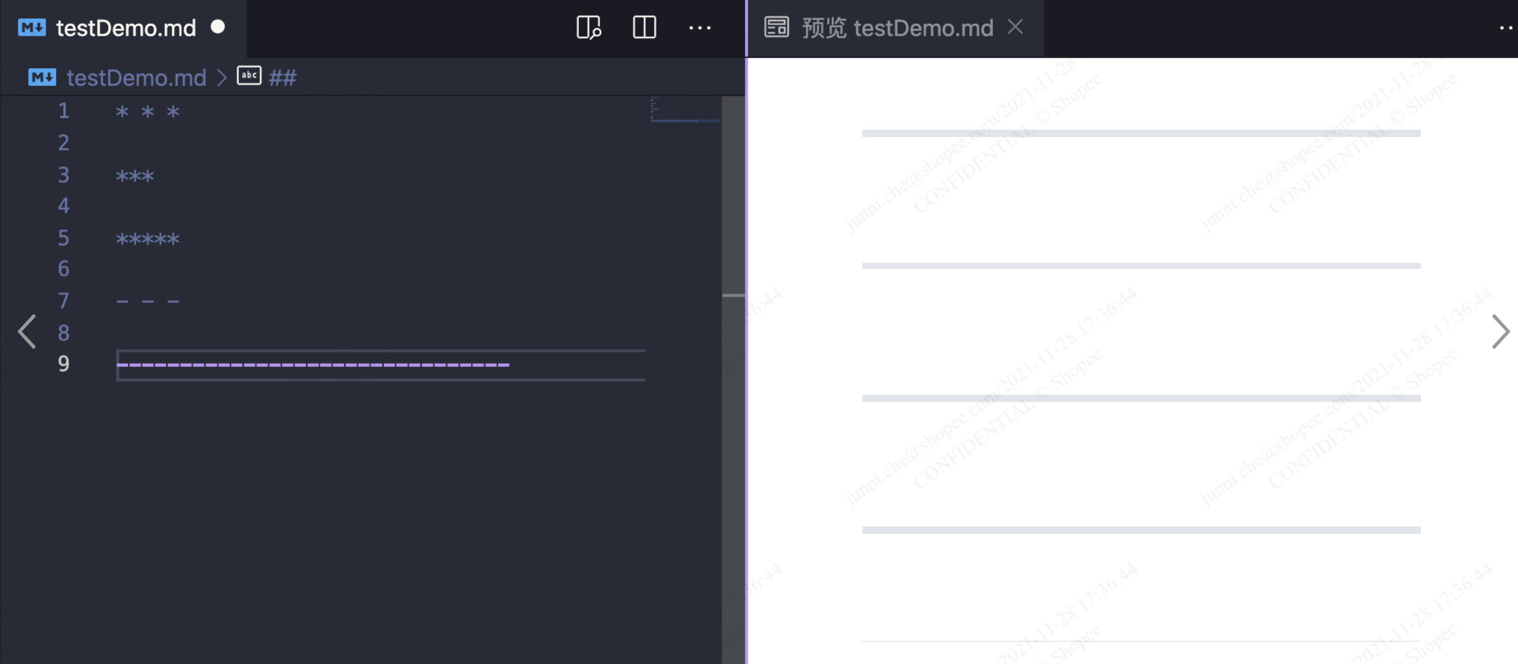 可以在一行中用三个以上的星号、减号、底线来建立一个分隔线,行内不能有其他东西。也可以在星号或是减号中间插入空格。下面每种写法都可以建立分隔线: