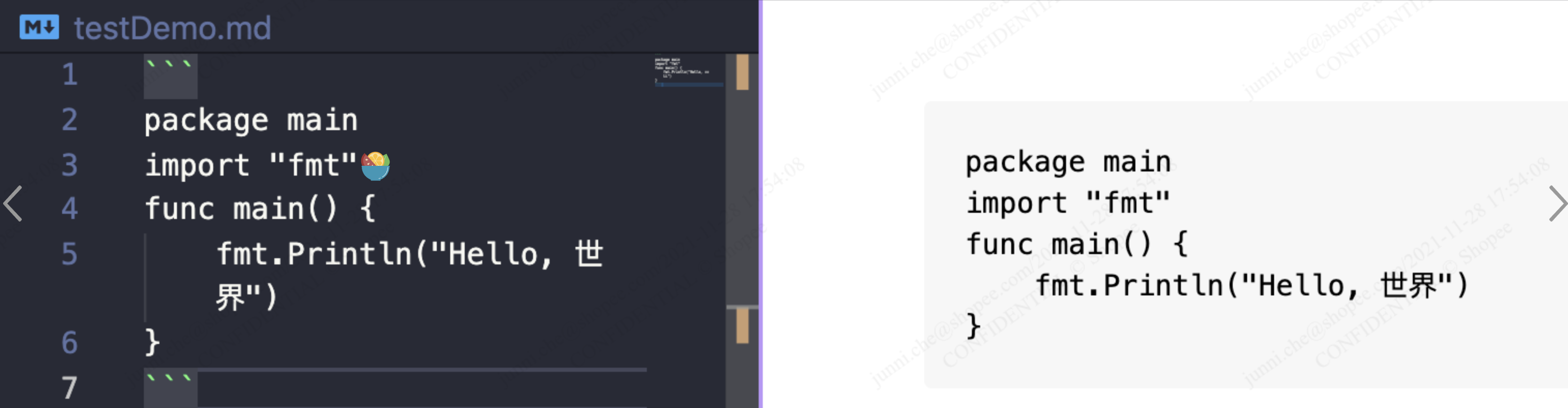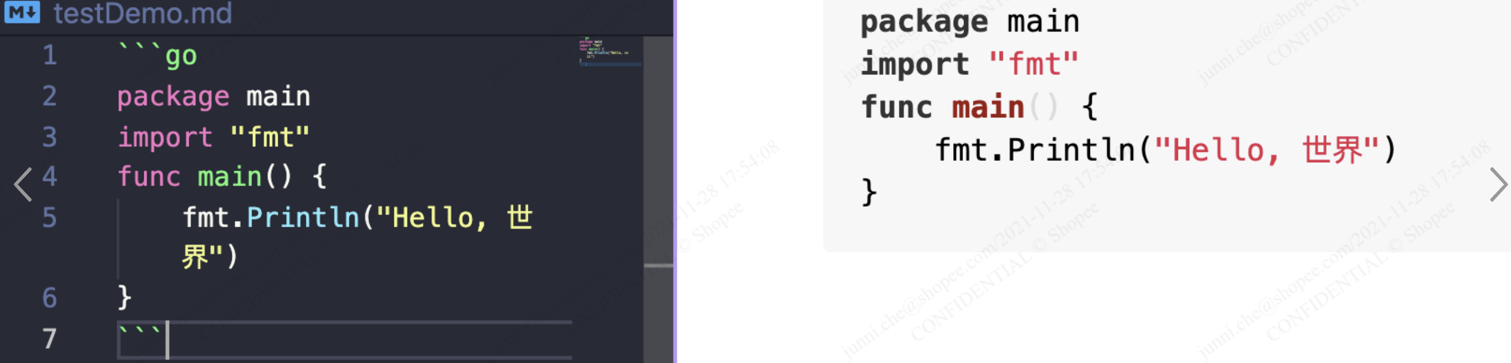 代码块:代码之间分别用三个反引号包起来,且两边的反引号单独占一行