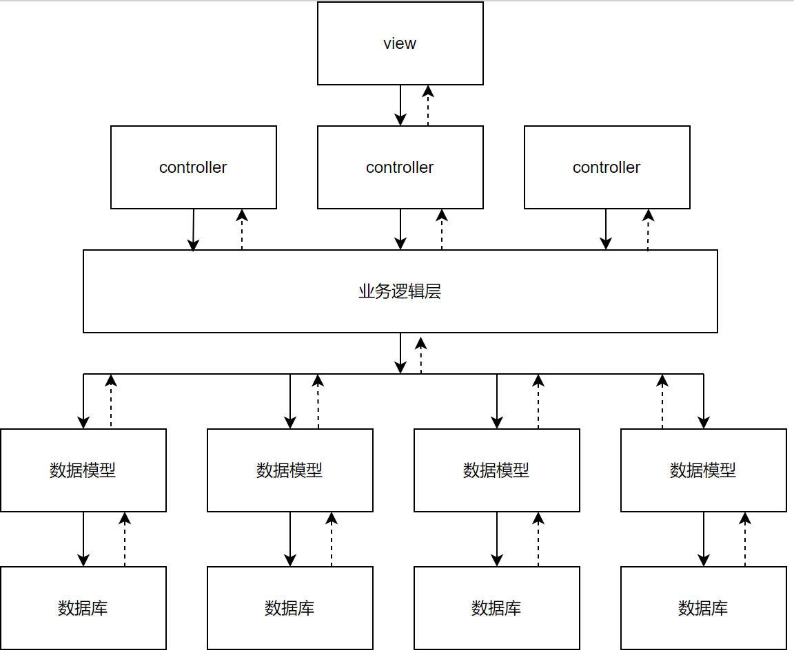 从软件系统模块执行的角度:实线表示用户在ui界面执行了某个操作后这个操作在软件系统中的影响的传递过程, 虚线表示软件系统对用户操作的响应的过程。