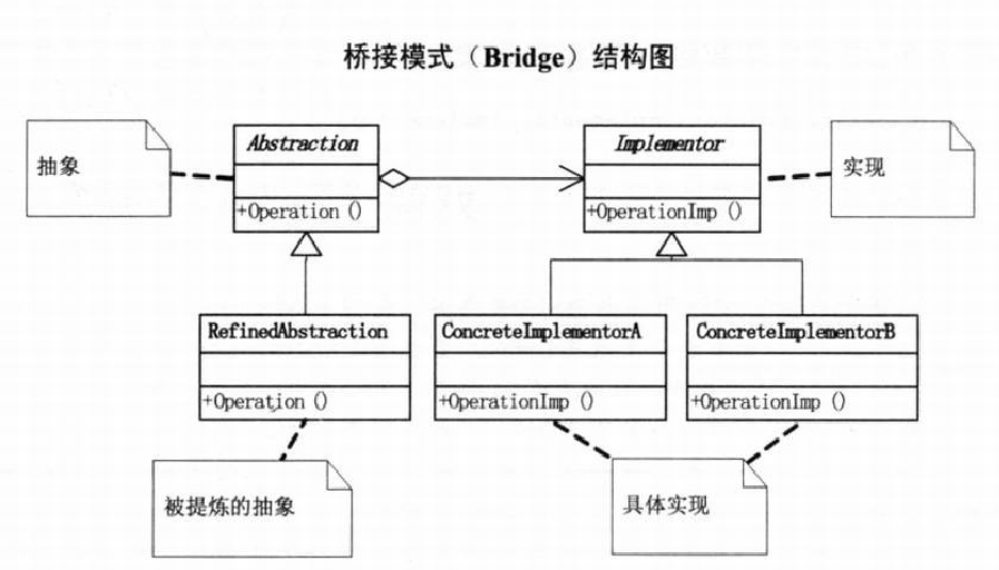 桥接模式则把原来的基类的实现化细节抽象出来,在构造到一个实现化的结构中,然后再把原来的基类改造成一个抽象化的等级结构,这样就可以实现系统在多个维度上的独立变化 。