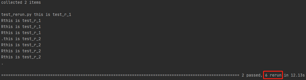 可以看到,用例执行失败后将会被重现执行,直到次数执行完或执行成功。