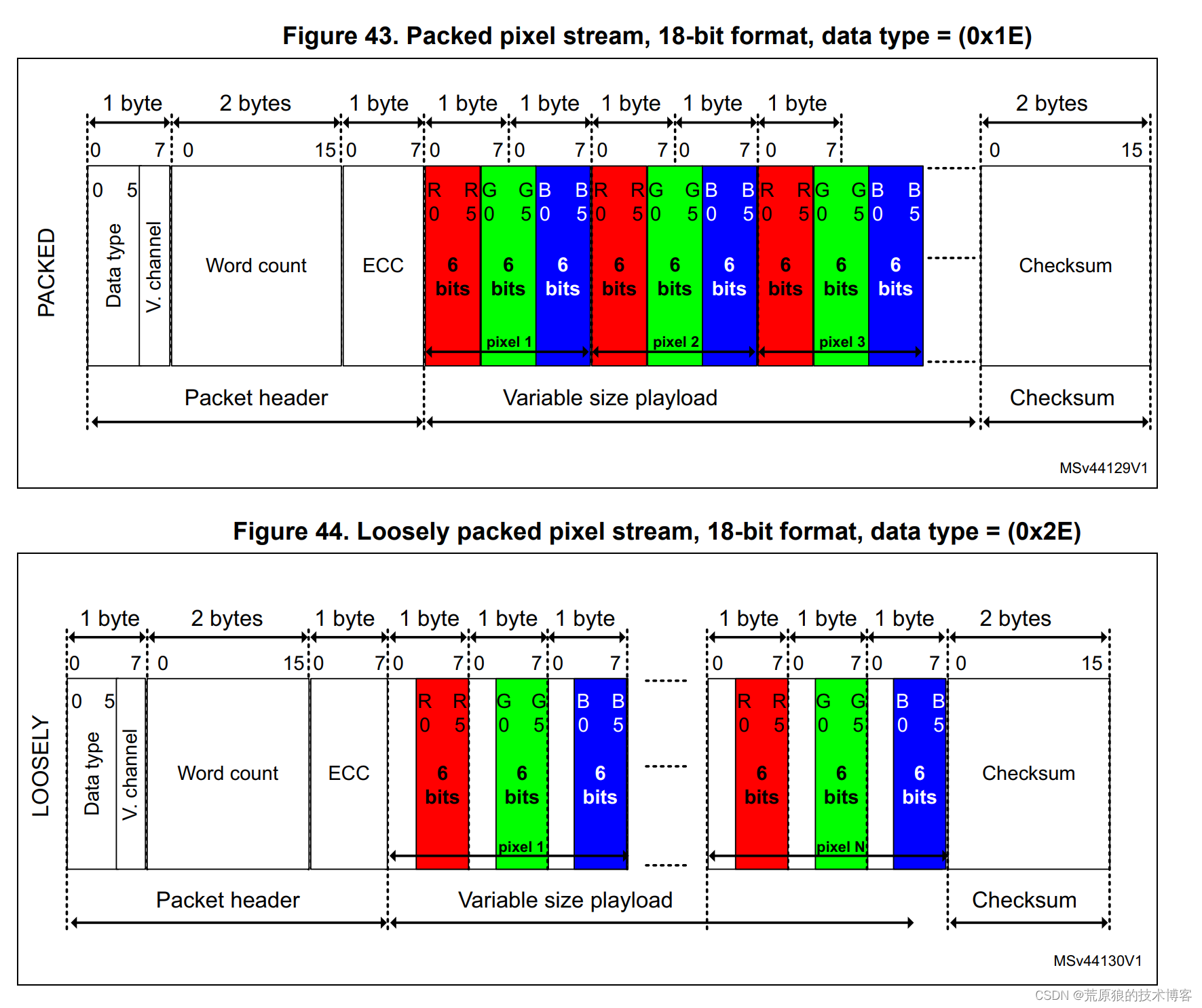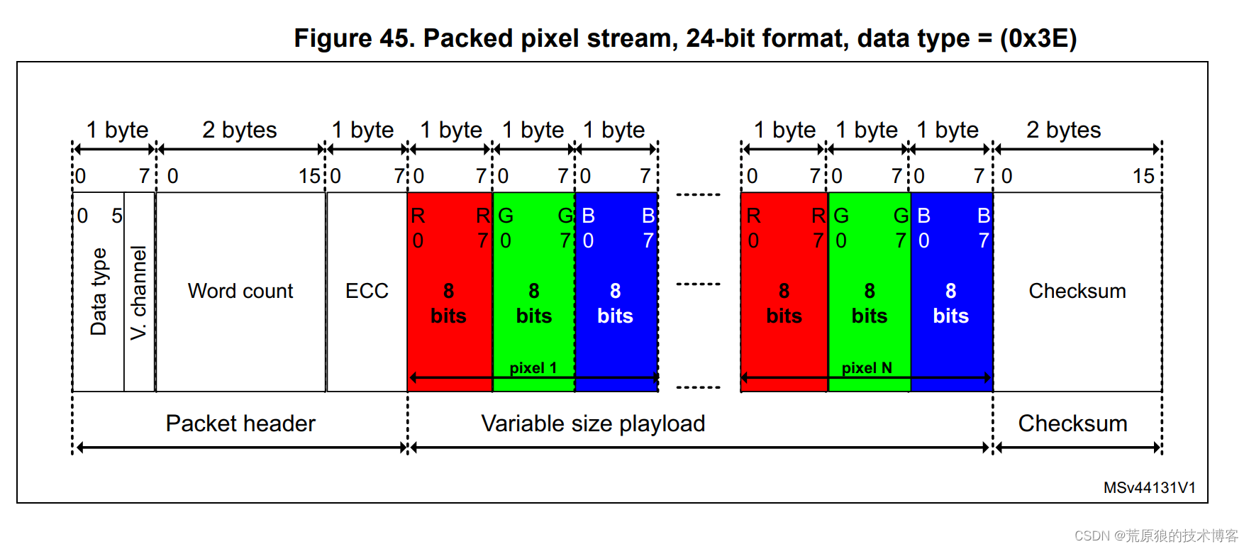 Refer to Figure 45. Figure 42. Packed pixel stream, 16-bit format, data type (0x0E)