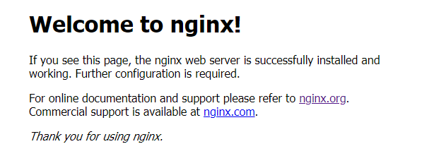 8.打开浏览器,访问虚拟机所处内网ip即可打开nginx默认页面,显示如下便表示安装成功: