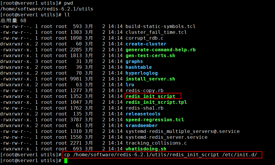cp /home/software/redis-6.2.1/utils/redis_init_script /etc/init.d/