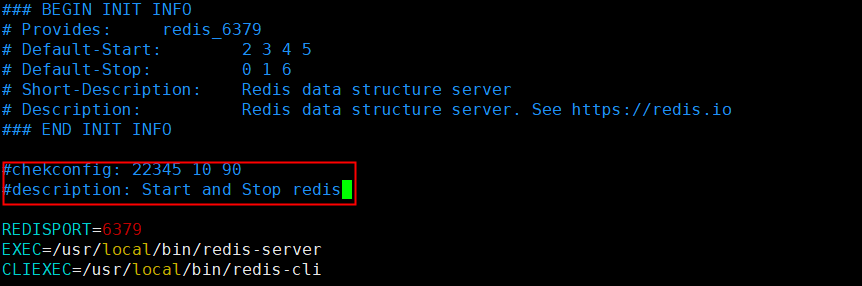10.设置redis开机自启动,修改redis_init_script,添加如下内容
