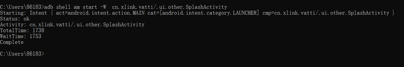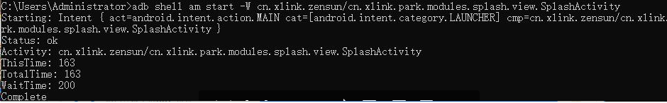 3.执行命令:adb shell am start -S -W [packageName]/[packageName.MainActivity]