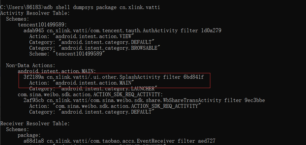 2、获取启动Activity:adb shell dumpsys package XXXXX