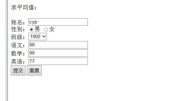 您的各科平均分是:<%=(c+m+y)/3.0 %>