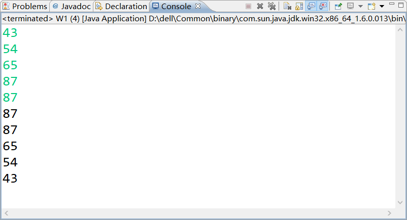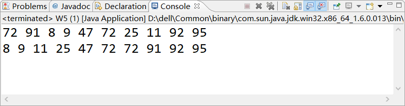 3、给定一个有9个整数(1,6,2,3,9,4,5,7,8)的数组,先排序,然后输出排序后的数组的值。(知识点:Arrays.sort排序、冒泡排序)