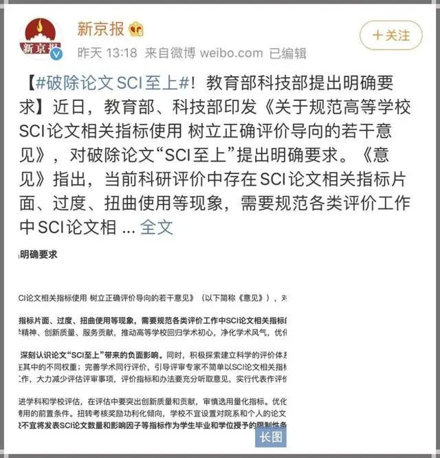 《意见》很长,部分媒体提前为我们圈好了重点:破除“SCI论文至上”。